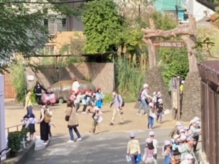 グループ行動が始まりました。1、2年生の合同チームでまわっています。