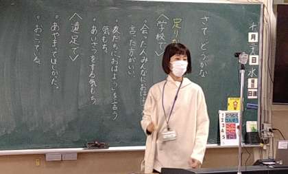 この題材文は、「よりよい礼儀」について考える文になっています。学校と遠足の2つの場面の出来事についてよりよい礼儀について考えています。