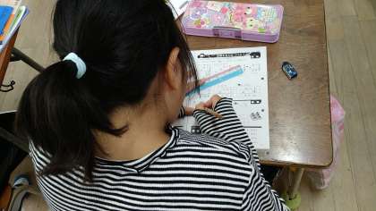 かけ算の筆算の練習問題に取り組んでいます。