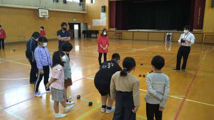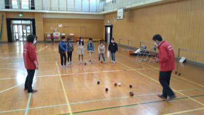 ボッチャ体験をしています。