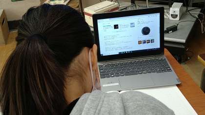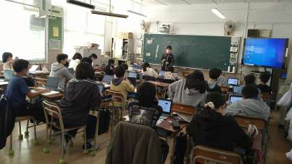 タブレット端末を使って、「大きさ」「重さ」「表面温度」「自転の周期」「密度」などの違いを調べ発表しています。
