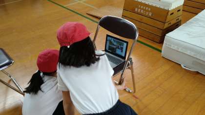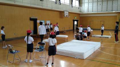 閉脚跳びは、横向きから縦向きの跳び箱の順に練習していきます。3人のトリオでアドバイスし合って練習しています。練習の成果が出て、縦向きの5段を跳ぶ児童も出てきています。