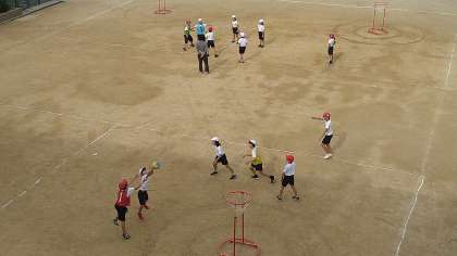 運動場でセストボールをしています。