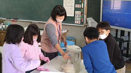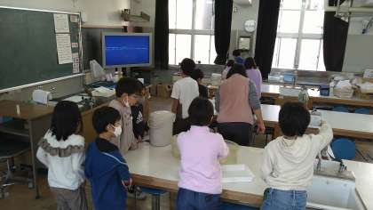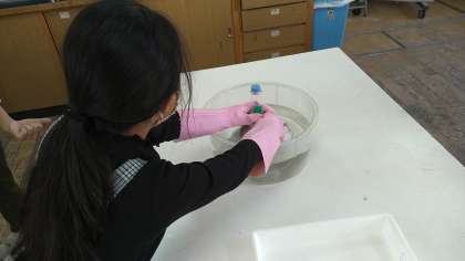 理科室に移動して実験をしています。