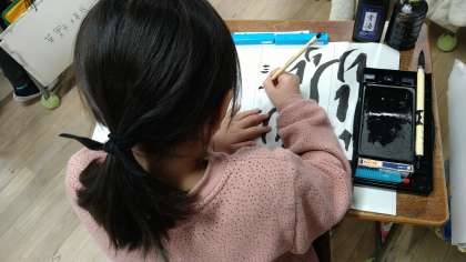 書き初めの練習をしています。