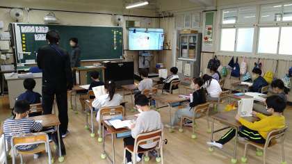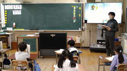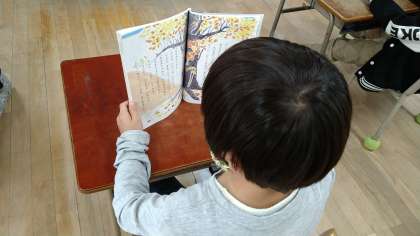 各自で読む練習したあと、少しずつ順番に読んでいます。動作化をしながら登場人物(ねずみ)の心情に寄り添っています。