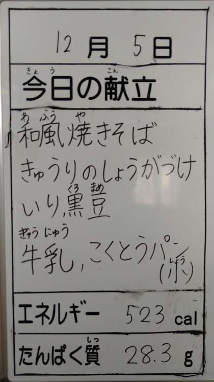 12月6日(火)の給食