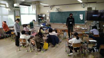 「明るくつく」「つかない」「その他」の3つの選択肢から自分の考えを選び、その理由を説明しています。自分以外の考えを聞いて意見を変えることは実験をおこなうまで可能です。