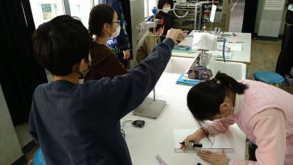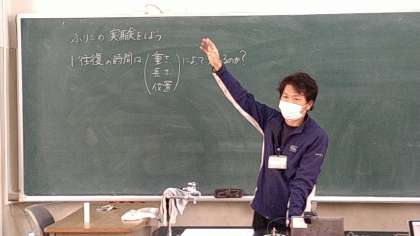 1往復の時間が変わる原因は何かということを実験をして見つけようとしています。「重さ・長さ・位置」の3つが前回の学習で子どもたちから出てきています。今回は「重さ」について実験装置をつくり実験しています。
