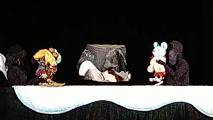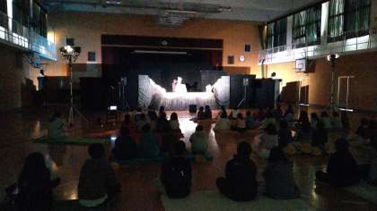 今年度は、人形劇団「京芸」に来ていただいています。演目は「火曜日のごちそうはひきがえる」です。本校では毎年度、芸術鑑賞会をおこなっています。隔年で音楽と劇をおこなっており、今年度は劇となっています。