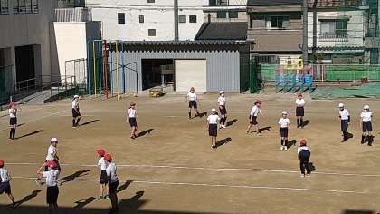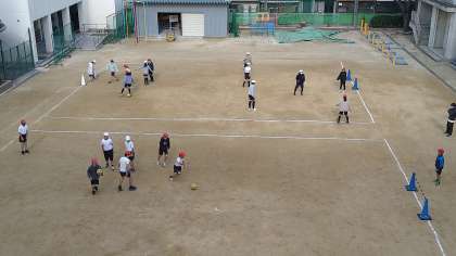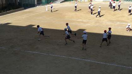 今学期最後の体育の学習となります。ハーフコートで練習と試合をおこなったあと、フルコートでゴールを置いて最後の試合をおこなっています。