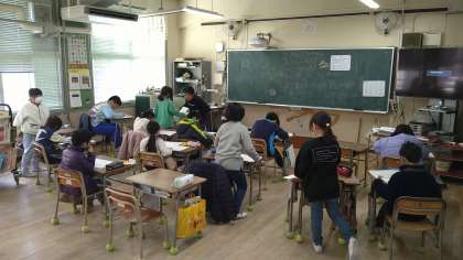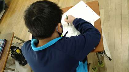 3年でこれまでに学習した漢字を練習しています。漢字プリントは全部で25問あります。1問につき、2つから6つの漢字を書いています。