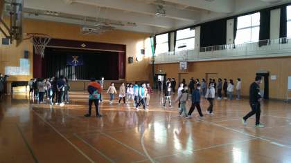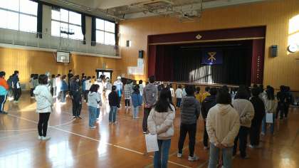 校長先生のお話、冬休み中の活動でいただいた表彰状の贈呈、校歌斉唱とおこないました。