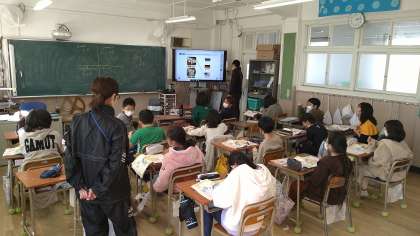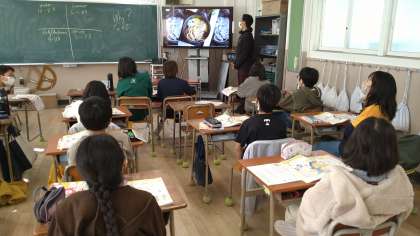 「日本の四季や文化を紹介しよう」という単元です。正月の行事や遊び、海外で食べられている日本食について紹介しています。