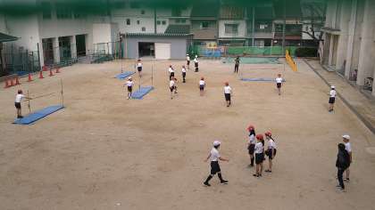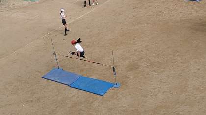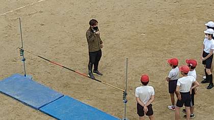 今日が2時間目の学習となります。早い段階でコツをつかむ子どもたちは、この時間くらいから記録が伸びています。本日の最高記録は110cmでした。
