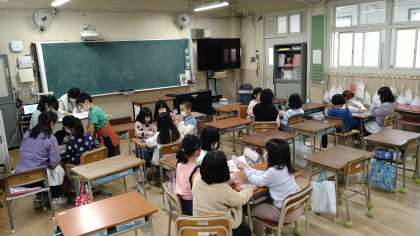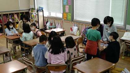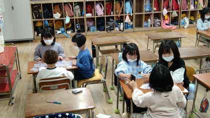 5つのグループに分かれて、トランプゲームや伝言ゲームなどを楽しんでいます。