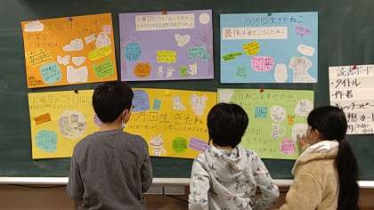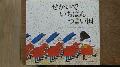 今回は「せかいでいちばんつよい国」です。読書会は学期に1回くらいのペースで実施しています。これまでに「100万回生きたねこ」「火曜日のごちそうはヒキガエル」を読みました。事前に読むことを課題にし、個人の感想を持ち寄って意見交換しています。