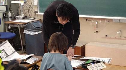 2年の頃の学習から振り返りながら進めています。書きパ始めは1マス空けることや会話文(「 」)のある文の書き方から練習しています。