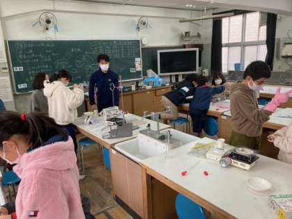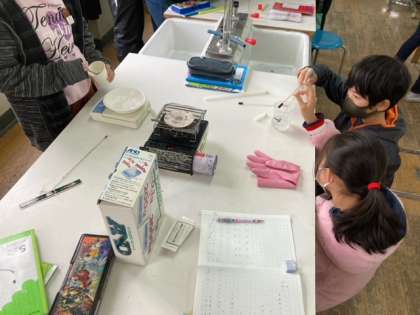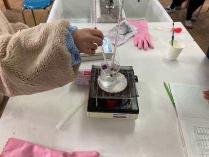 もののとけ方についての学習です。ミョウバンのとける量は温度によって変わるのか実験して確かめています。