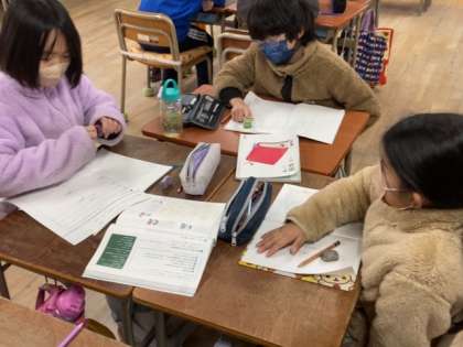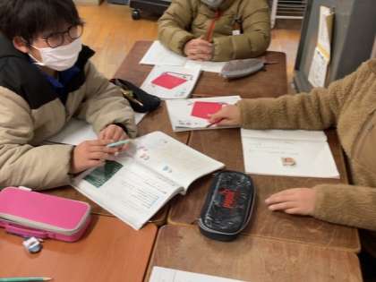 アンケートを作ります。班ごとに分かれてどのようなアンケートを作成するか話し合っています。
