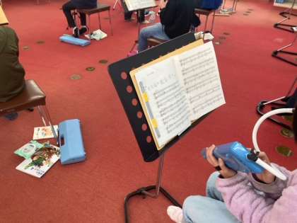 「もののけ姫」をリコーダーと鍵盤ハーモニカのパートにわかれて練習しています。