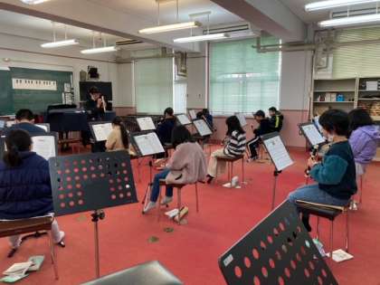 指をしっかり押さえて吹く力も考え、美しい音を出すように繰り返し練習しています。