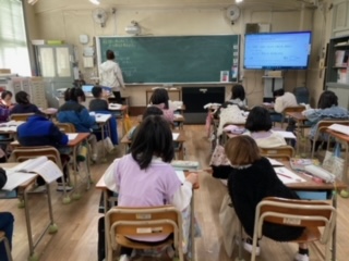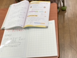 テープ図を使って式を考え、答えを出す問題です。わからない数を□として式を導いています。