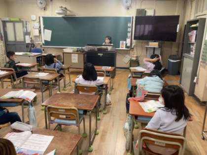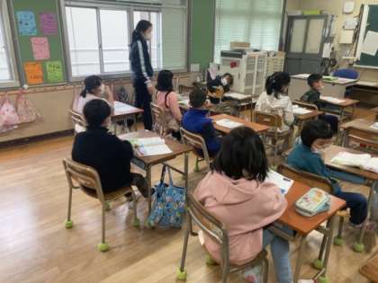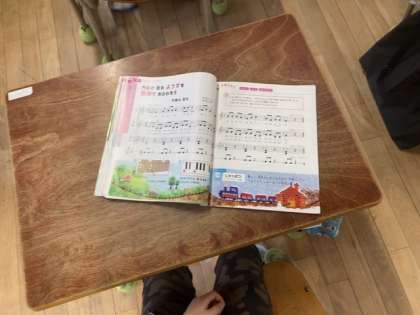 「汽車は走る」を歌うパートをわけて歌っています。お互いの声を聞きながら上手に歌っていました。