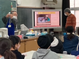 教育委員会の事業の一つで理科支援事業があり、民間団体のご協力で理科の特別授業を受けました。発電の仕組みやエネルギーについて学習しました。少し難しい内容もありましたが、実験もあって面白かったです。