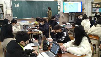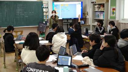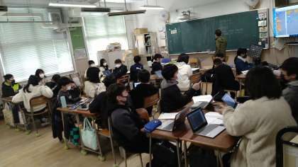 プログラミングのソフト「スタディーノ」で光のセンサーと人のセンサーのついたキットを操作する学習をしました。まとめとして、家の中でセンサーが活用されているところを話し合っています。
