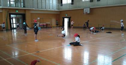 前半の短なわは、学習カードにそって進めてできる技や回数が増えています。後半の長なわは「入る・跳ぶ・出る」の3つをできる子どもたちが増えてきています。