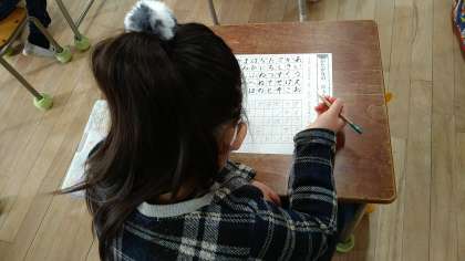 しっかりと定着させるために繰り返しおこなっています。今回は3回目になります。まだ、鏡文字になっているカタカナも見られますが、思い出しながら書いています。