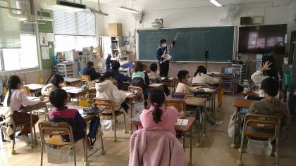 ごみについて、普段子どもたちがやったことのあること、ごみの収集についてのきまりなど経験したことや知っていることを発表しています。