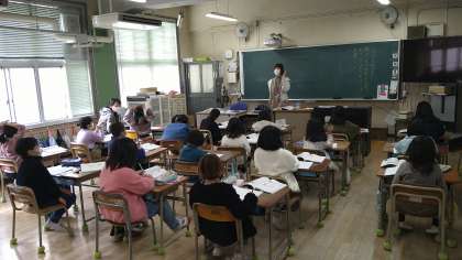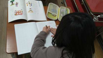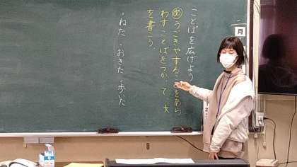 動きやすることをあらわすことばをノートに書いています。「ねた」「おきた」「歩いた」「食べた」「わらった」などたくさんの言葉を発表しています。