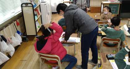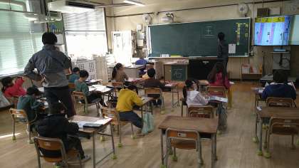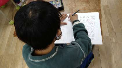 今日の新出漢字は「玉」です。玉の「、」の位置に気をつけることを指導しています。漢字ドリルで練習したあと、ノートに練習しています。