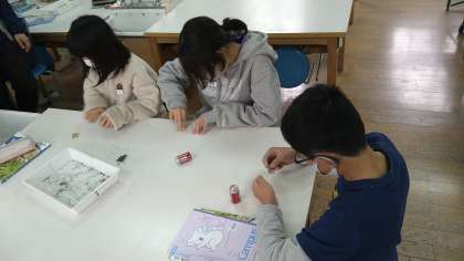 「導線と電池で磁石になる?」を課題として学習に取り組んでいます。