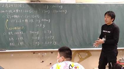 「1cmの紙の重さをはかるには?」という課題に取り組んでいます。