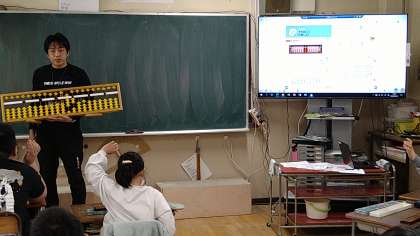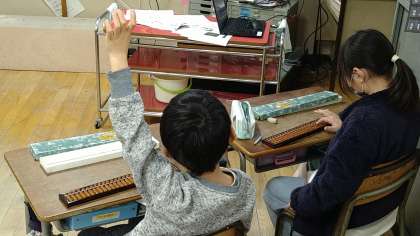 3年では、1万のくらいから1/10の位までを使うことを学習しています。ほとんどの子どもたちが初めて触るので基本的なことから学習しています。