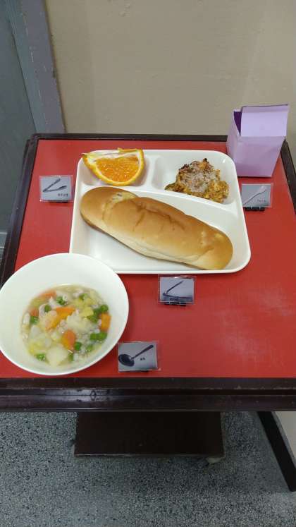 今日は小おかずで「とうふのミートグラタン」が提供されています。普段のグラタンはマカロニやスパゲティで作られることが多いですが、給食ではとうふやなすなども使用されています。
