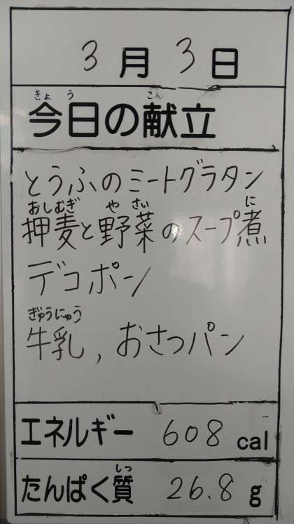 3月3日(金)の給食
