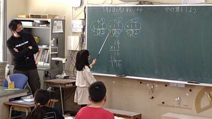 2桁?2桁のかけ算をしています。