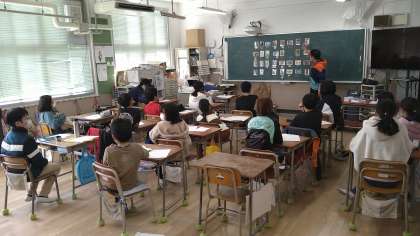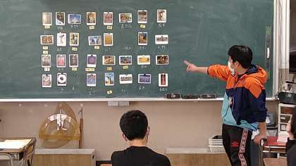 1人2枚のアートカードから考えています。できあがったものを「かるた」の読み札にしてアートカードを取るかるた大会をおこなう予定です。