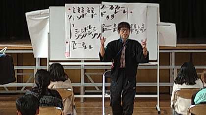 「大空がむかえる朝」を二部合唱で練習しています。音階でパートの重なりの部分を繰り返し練習しています。途中で発声練習をしながら、美しい歌声が響くようにがんばっています。