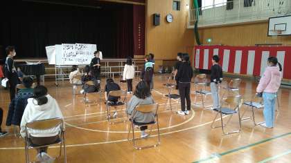 体育館で卒業式の歌の練習をしています。