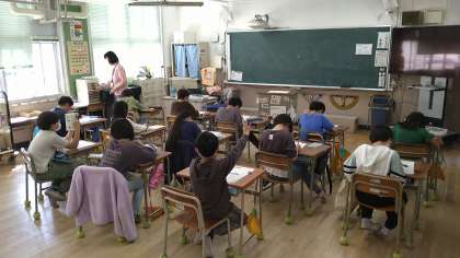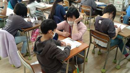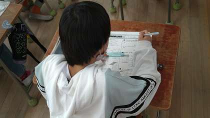 この1年間におこなった学習のまとめです。みんな集中して取り組んでいます。