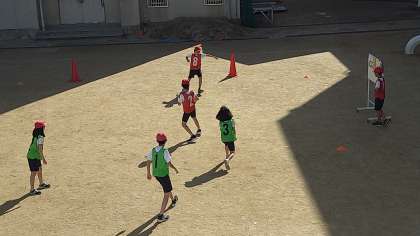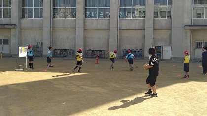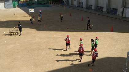 今日までは、攻防一体型のいわゆるサッカーではなく、攻防分離型のハーフコートサッカーをおこなっています。ボールに触れる機会を増やし、攻めと守りの基本を身につけることができるようにしています。