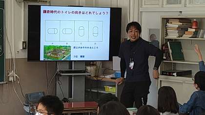 歴史学習の鎌倉時代のトイレについての学習で始めています。身を守るためのトイレの向き(扉の位置)について考えています。