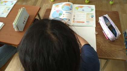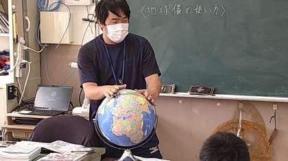 地球儀の見方や地球儀の中に書かれている縦線と横線について説明しています。