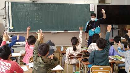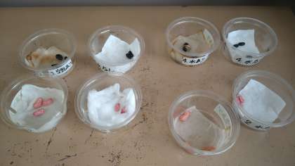 水と日光の条件が違う4種類の実験をした結果を確認しています。実験の結果、水がないとインゲンマメは発芽しないことに気がついています。