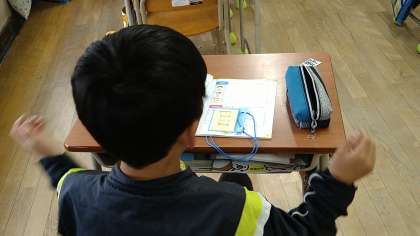 月曜日から日曜日までの発音をしてから、数字の発音をしています。数字は1から10までを発音したあと、数字を隠したところを手拍子や足踏みをするアクティビティをしています。